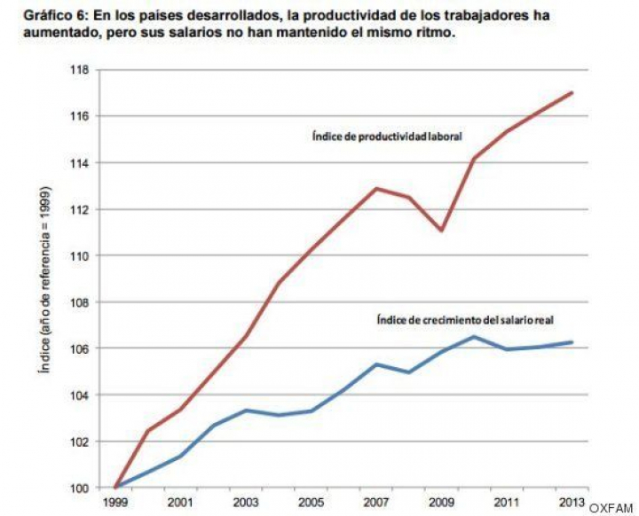 Aunque la organización predijo que la riqueza tendería a acumularse cada vez más en menos manos, no esperaba llegar a estos porcentajes hasta dentro de un año. Para hacerse una idea, en 2010 no eran 62 sino 388 ricos los que acumulaban tanto como el 50% más pobre.