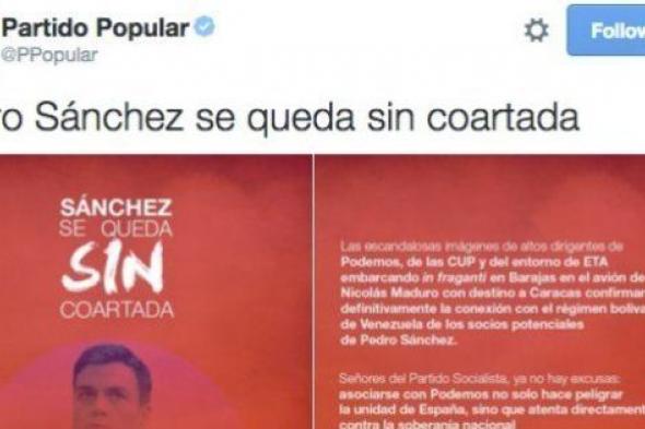 El Partido Popular ha utilizado la "exclusiva" de Antena 3 sobre la CUP, Podemos, el entorno de ETA y Venezuela para advertir a Pedro Sánchez de lo que podría pasar si pacta con la formación de Pablo Iglesias.