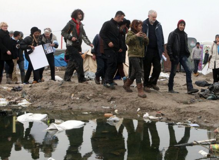 Jeremy Corbyn, el líder laborista británico, visitando esta semana el campo y examinando las precarias condiciones en que viven los refugiados, cuyo deseo es cruzar al Reino Unido.