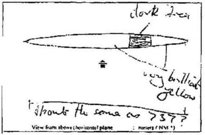 Dibujo del avistamiento en las islas del Canal de la Mancha (Reino Unido)