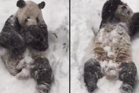 Un oso panda se revuelca de la felicidad en la nieve y se convierte en un viral mundial