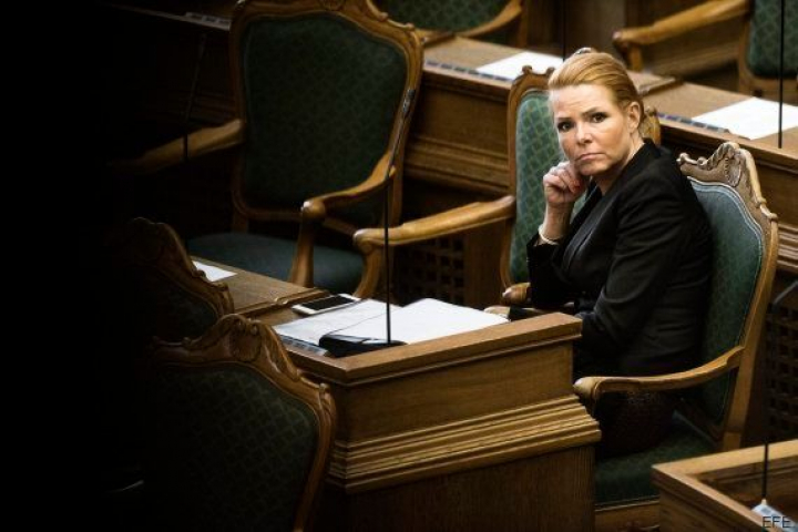 La ministra de inmigración e integración, Inger Stojberg, escuchando el debate