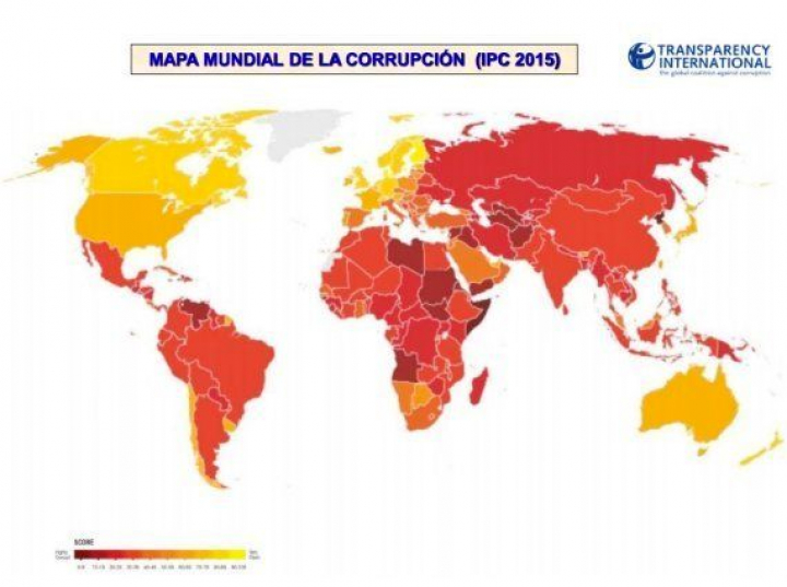 Según el Índice de la Percepción de la Corrupción 2015 de Transparencia Internacional, la corrupción en España se sitúa en el puesto 36 de 168 países, con 58 puntos, dos menos que en el índice anterior. El estudio se basa en la opinión de expertos del sector privado sobre la corrupción en el sector público.