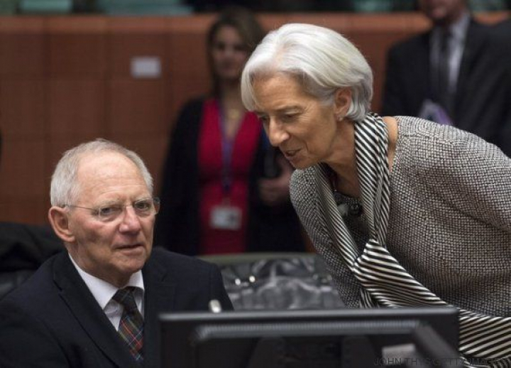 La directora del FMI, Christine Lagarde, conversa con el ministro alemán de Finanzas, Wolfgang Schäuble. En el contexto de la crisis griega, el FMI suele considerarse como 'poli bueno' y Alemania, como 'poli malo'.