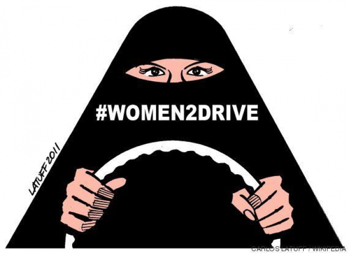 Imagen del dibujante Carlos Lafutt para la campaña en favor de las mujeres conductoras en Arabia Saudí.