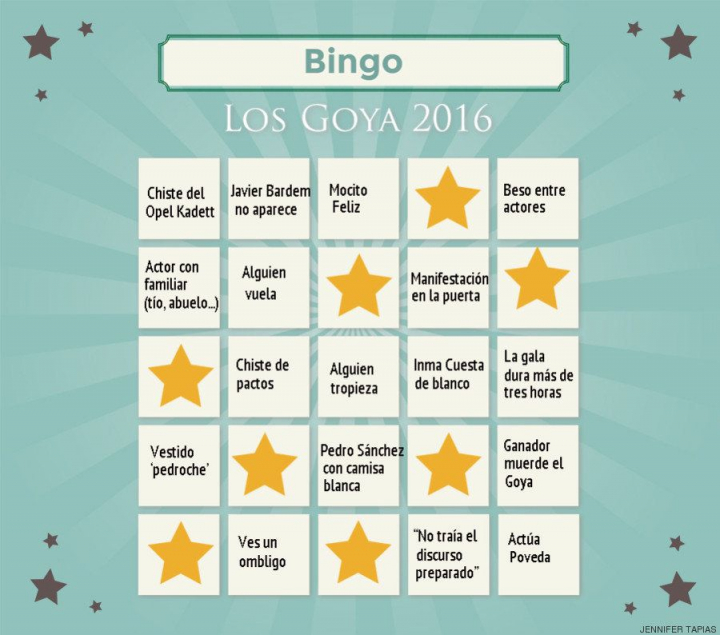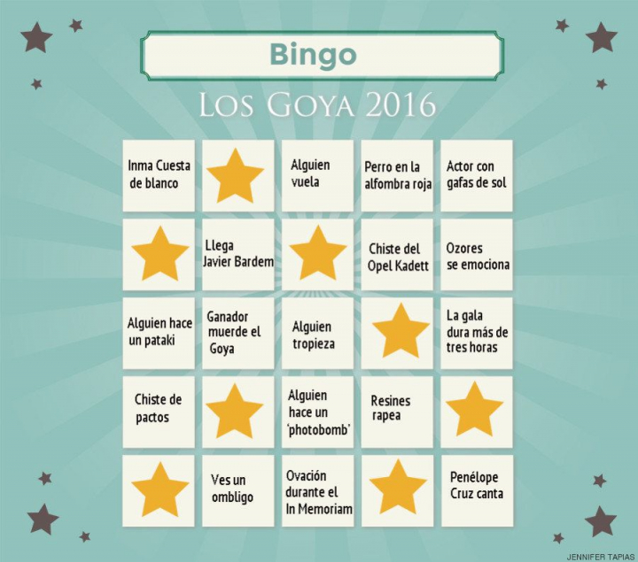 Si este sábado tienes confirmada la quedada para ver la gala de los premios Goya con tus amigos o familiares y ya tienes listo hasta el picoteo, sólo te falta una cosa para que la noche sea redonda: ¡nuestro bingo!