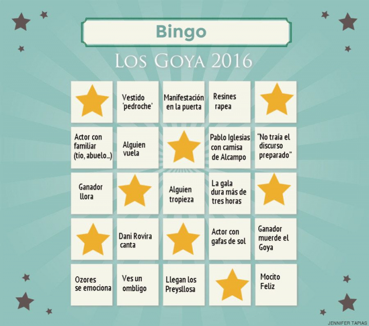 El bingo de los Goya 2016 para jugar mientras ves la gala