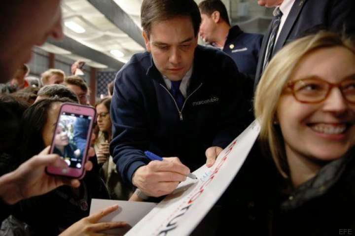 En Iowa Rubio se hizo con un tercer puesto y cada vez atrae a más curiosos. Prueba de ello es que, tal y como informa la agencia Efe, hace poco el senador, sumergido en lo que su campaña llama el "Marco-momento", tuvo que cambiar su "fiesta" de la Super Bowl a otro bar más grande en Manchester, la ciudad más poblada del estado, y sustituir un íntimo desayuno con tortitas por un gran encuentro con votantes, donde se repartió café y donuts.