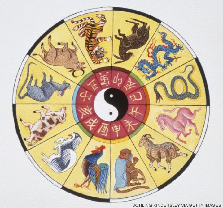 Mientras que el sistema occidental del zodiaco está dividido en 12 meses, el zodiaco chino está dividido en 12 años. Cada año va asociado a un animal: rata, buey, tigre, conejo, dragón, serpiente, caballo, oveja, mono, gallo, perro y cerdo. Se dice que la personalidad de la gente está influida por la personalidad del animal que domina su año de nacimiento. Hay multitud de leyendas alrededor de la historia de cómo se ordenaron los años. Una leyenda cuenta que Buda llamó a todos los animales del mundo antes de abandonar la Tierra y que los únicos que le escucharon fueron esos 12 animales, por lo que Buda puso el nombre de cada animal a cada año, siguiendo el orden en que llegó cada uno.