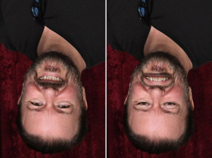 Existe una ilusión óptica por la cual cuando se ve una imagen retocada de una cara boca abajo junto a la original (también del revés), las dos parecen iguales. Sin embargo, al ponerlas en su posición natural, queda más que claro cuál es la que ha sido alterada.