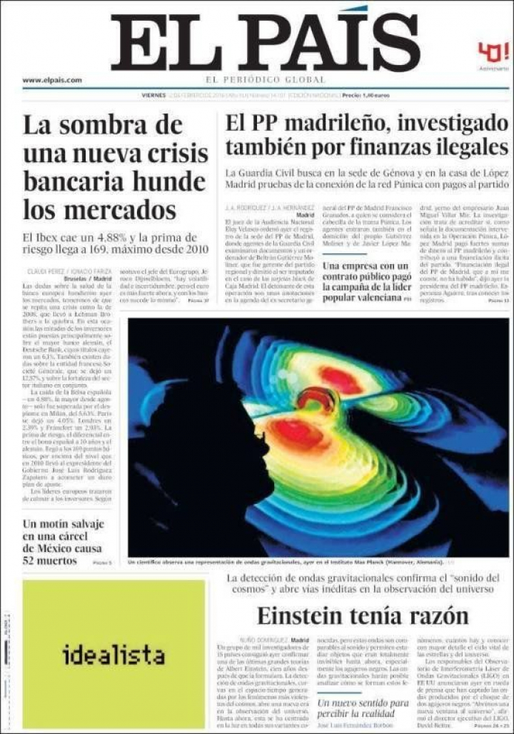Los diarios apuntan que se trata del "hallazgo del siglo" y la captación de ondas gravitacionales es tan complejo que los diarios se esfuerzan en explicarlo mediante preguntas y respuestas...