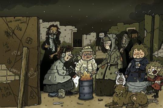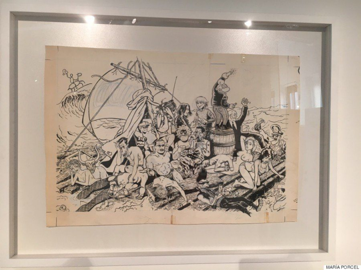 Además de las diez obras creadas ex profeso por los viñetistas —"sois todos unos artistazos", decía emocionado en la presentación—, se siente especialmente orgulloso de dos obras traídas para la exposición. Por un lado, de la portada del número 100 de la revista El Víbora, una recreación de La balsa de Medusa con los personajes de cómic de los dibujantes más importantes.