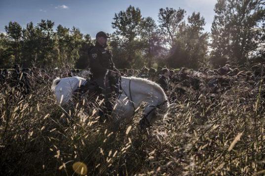 La instantánea fue captada en la noche del 28 de agosto de 2015. Es un instante, la culminación de cinco días de espera por parte de un grupo de refugiados, de unas 200 personas. Toda la noche, explica el fotógrafo afincado en Budapest, estuvieron estos civiles y la prensa que les acompañaba jugando "al gato y al ratón" con la policía húngara, con la orden clara de no dejar pasar a nadie. Ni uno. Como si fueran delincuentes.