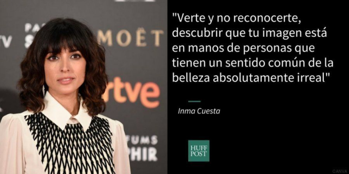 "Verte y no reconocerte, descubrir que tu imagen está en manos de personas que tienen un sentido de la belleza absolutamente irreal". Así comenzaba una denuncia a través de sus redes sociales la actriz Inma Cuesta, después de que su foto fuese retocada excesivamente en una portada del suplemento dominical de El Periódico de Catalunya. Publicó la imagen original y la retocada, visibilizando unas diferencias abismales. "No entiendo la necesidad de retocar mi cuerpo hasta dejarme casi en la mitad de lo que soy, alisar mi piel y alargar mi cuello hasta convertirme casi en una muñeca sin expresión", se quejó la actriz en su cuenta de Instagram.