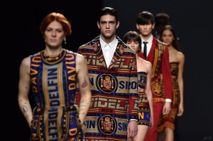 Una colección hecha con bufandas. Davidelfin abría la segunda jornada de la 63ª edición de la Mercedes Benz Madrid Fashion Week con un conjunto de prendas que parecían hechas a partir de bufandas del equipo del diseñador.