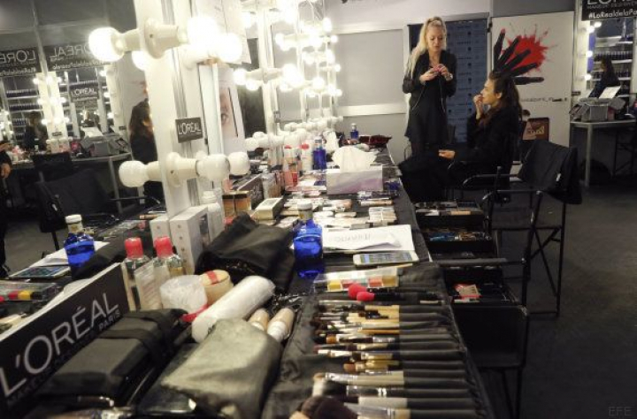 Entre las instalaciones de IFEMA, una enorme sala de maquillaje y peluquería que da cobertura a todos los desfiles.