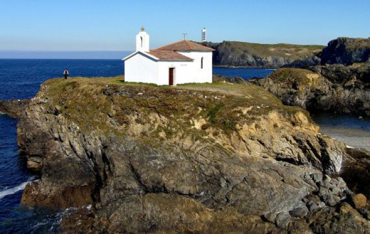 La ermita de A Virxe do Porto y el faro de Meirás al fondo. Foto: Jose Luis Cernadas Iglesias (Flickr)