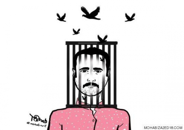 Ilustración de Ahmed Naji realizada por el artista egipcio Mohab y publicada en za2ed18.com.
