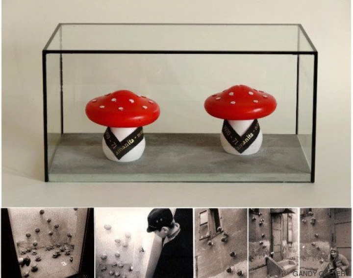 Citation Amanita Muscaria de Jana Želibská, 1970. Performance de los años 70 centrada en una de las setas más venenosas. La artista puso varias de ellas en la pared de su casa como una declaración sobre la venenosa y prohibitiva política de la época.