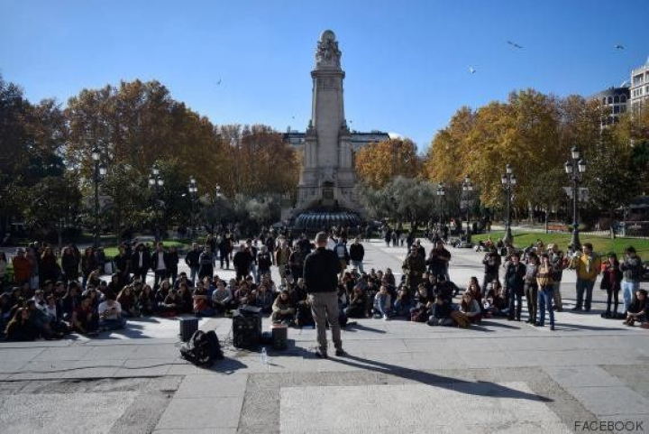 Clase de filosofía en una plaza de Madrid, durante la protesta por la eliminación de la asignatura, el pasado noviembre.