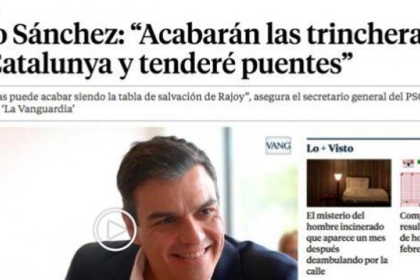 Sobre el conflicto catalán, Sánchez también afirma en La Vanguardia que con él en La Moncloa "acabarán las trincheras" y tenderá "puentes".