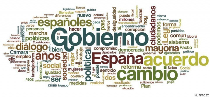 Esas son también otras palabras clave que ha repetido, y que están en mayor tamaño en la nube siguiente. A mayor tipo de letra, más veces ha repetido la palabra en cuestión: