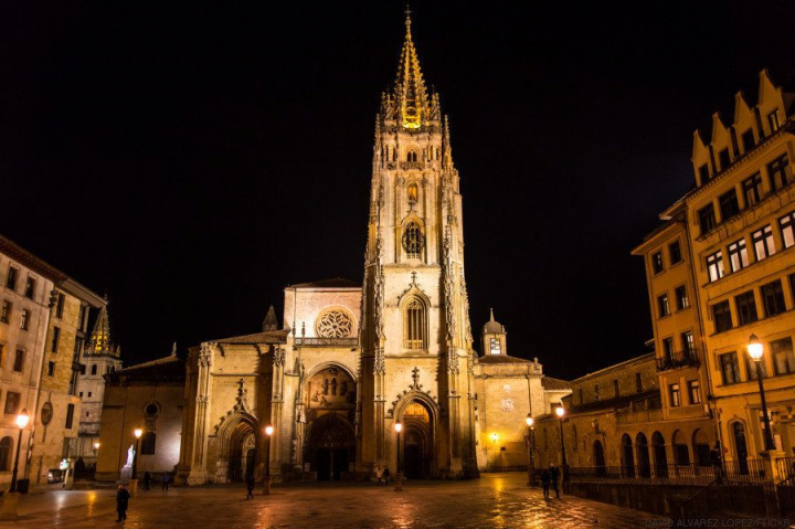Una foto obligada… en el km 0 situado en la Catedral de San Salvador de Oviedo.