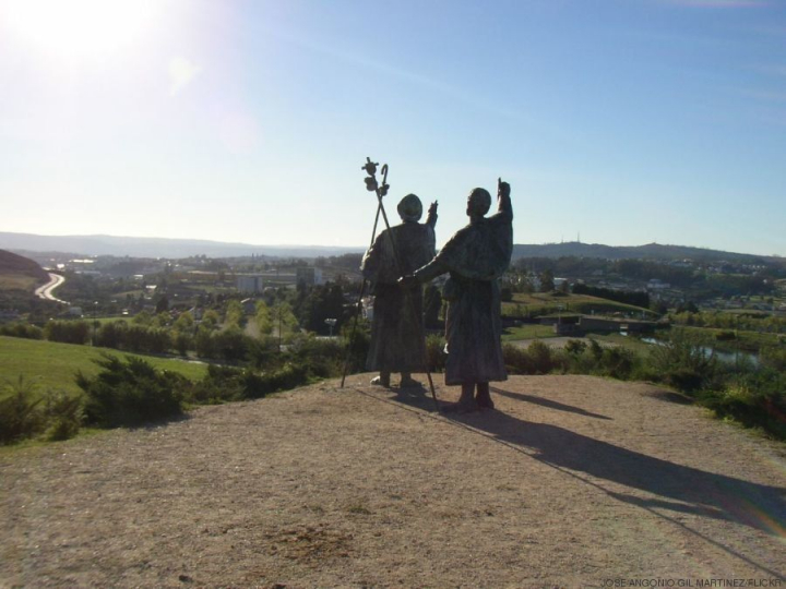 Una foto obligada… junto a la estatua de los peregrinos que miran a Santiago en el Monte do Gozo.