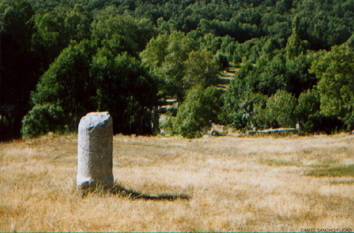 Una foto obligada… en alguno de los numerosos miliarios que señalaban la distancia de una milla en la calzada romana original de la zona de Extremadura.