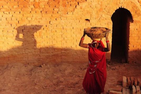 Una trabajadora india en la fábrica de ladrillos en Allahabad, el 7 de marzo de 2013. (Sanjay Kanojia/AFP/Getty Images)