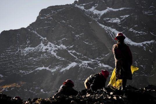 Pallaqueras --mineras de oro--, buscando oro en una carga de roca de desecho en las minas de La Rinconada, Perú, el 4 de agosto de 2012. (Jan Sochor/Latincontent/Getty Images)