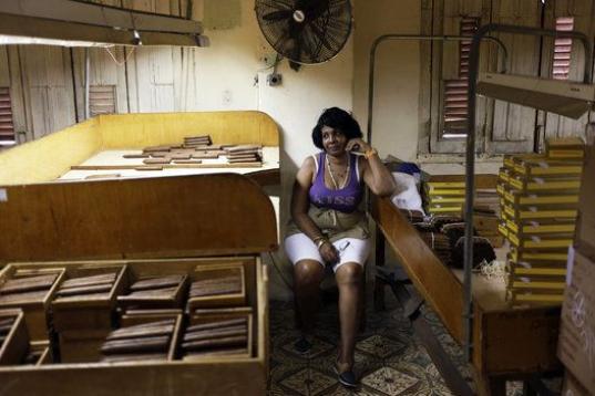 Una mujer cubana trabaja en la fábrica de tabacos H. Upmann el 26 de febrero de 2015, en La Habana, Cuba. (Sven Creutzmann/Mambo Photo/Getty Images)
