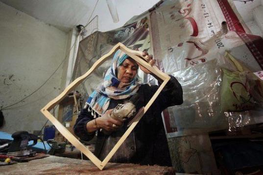 La palestina Amal Abu-Rqayiq trabaja en su carpintería en el campamento de refugiados de Nusseirat en la ciudad de Gaza, Gaza, el 8 de marzo de 2014. Amal es una divorciada de 40 años de edad y trabaja en una profesión dominada por los hombre...