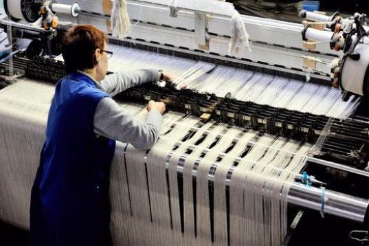 Una empleada de la empresa Lemaitre Demeestere hace funcinoar un telar de lino el 16 de abril de 2013 en Halluin, al norte de Francia. (PHILIPPE HUGUEN/AFP/Getty Images)