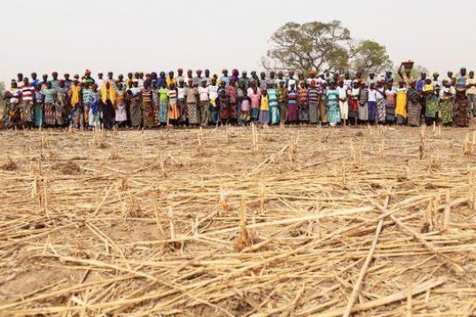 Un grupo de mujeres que forma parte de un programa de trabajo pagado dirigido por la organización no gubernamental "Acción Francesa contra el Hambre" para construir diques para contener el paso del agua, el 21 de marzo 2012 cerca de la aldea d...