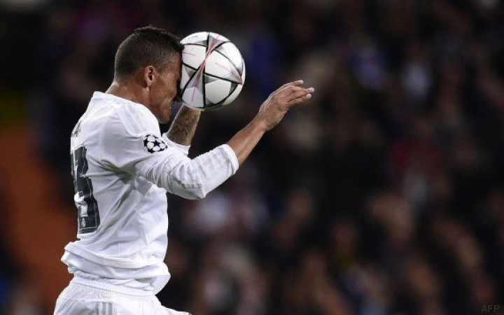 La de Danilo, lateral brasileño del Madrid, hundiendo su rostro sobre el balón de la Champions. Fotón de AFP: