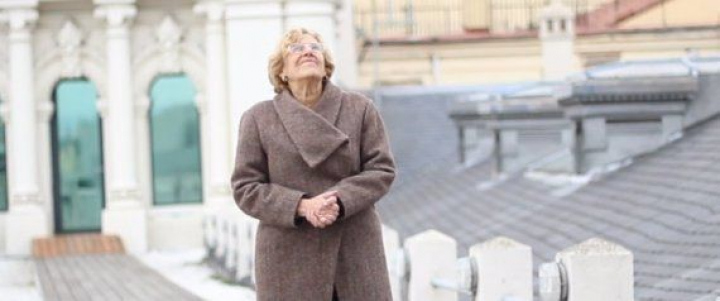 La alcaldesa de Madrid en la azotea del Palacio de Cibeles