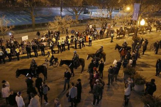 En una rueda de prensa esta madrugada, el superintendente de la Policía de Chicago, John Escalante, informó de las cinco detenciones: dos llevadas a cabo por la Policía de Chicago y otras dos por los agentes del campus de la Universidad de Illinois (donde iba a celebrarse el acto). La quinta detención fue la del periodista de CBS News Sopan Deb, quien fue arrestado por motivos que todavía se desconocen por la Policía estatal de Illinois. Dos agentes de Policía resultaron heridos, aunque no de gravedad, uno de ellos al recibir un botellazo en la cabeza.