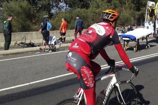 El accidente se registró en el kilómetro 44 de la citada vía en el lugar de San Xián cuando un hombre de 87 años de edad al volante de un coche intentó adelantarlos y en la maniobra alcanzó a varios de ellos, según diversas fuentes. El conductor, según La Voz de Galicia, ha dado negativo en las pruebas de alcoholemia y de drogas. Tiene el carné en vigor y el coche con el que se produjo el siniestro -un todoterreno- tiene la ITV en vigor.