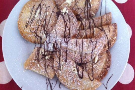 El truco de estas empanadillas es hacerlas redondas (con dos obleas) y no triangulares, así se puede incluir más relleno. Mira en Cookpad cómo prepararlas.