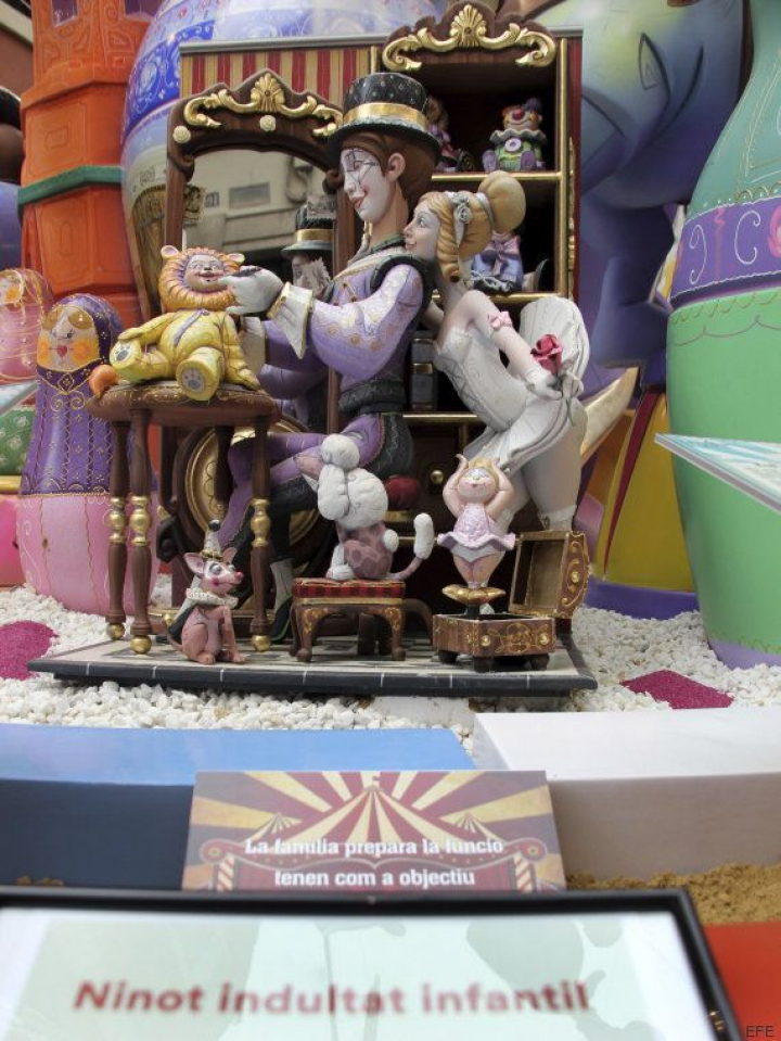 El ninot infantil que no se quemará este año es una creación de Sergio Gómez para la falla Sueca-Literato Azorín. Esta es la tercera vez que la comisión consigue un Ninot Indultat, también lo tuvo en 2002 y en 2003, en ambas ocasiones por obras de Juan Carlos Molés. La escena El circo...ohhh está inspirada en la llegada del circo ruso a Valencia y trata sobre una familia circense que se encuentra preparándose en un camerino antiguo con suelo de cerámica para la función.