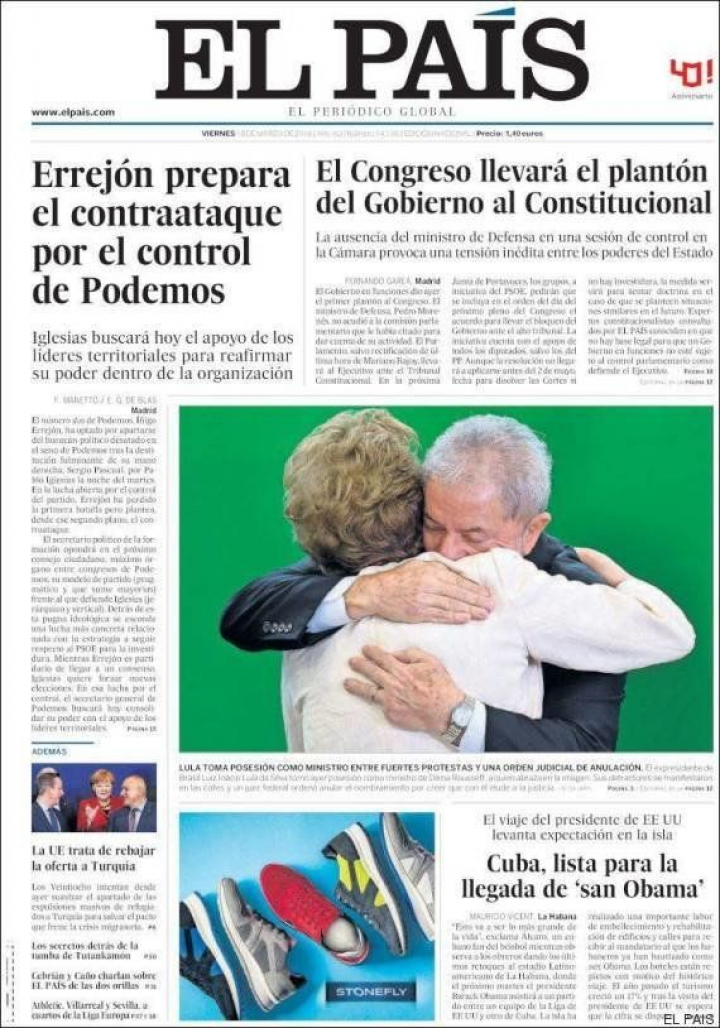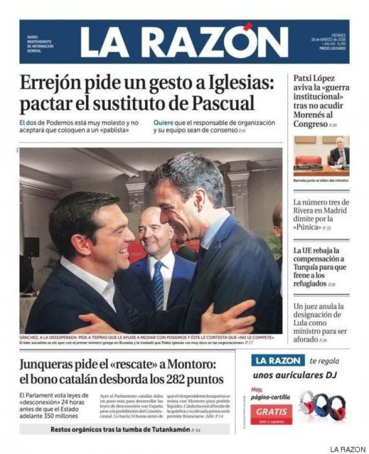 "Errejón prepara el contraataque por el control de Podemos", anuncia El País; y La Razón avanza que "Errejón pide un gesto a Iglesias: pactar el sustituto" del secretario de organización. El Mundo estima que "los anticapitalistas -que tienen a la andaluza Teresa Rodríguez como referente- ganan poder a costa de Errejón" porque Iglesias refuerza el sector más izquierdista para rematar su golpe de mano. Para Màrius Carol, director de La Vanguardia, esta manera de ejercer la nueva política se parece mucho a la que ya tenía lugar en el siglo XVI y glosaba Maquiavelo: "Hay que ser zorro para conocer las trampas y león para apartar a los lobos".