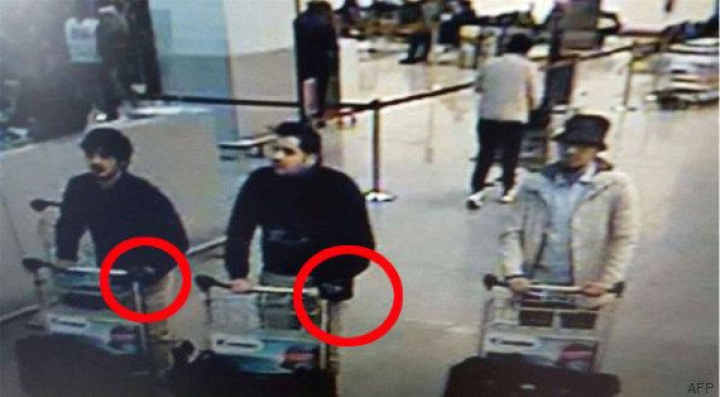 Las cámaras de seguridad del aeropuerto internacional de Bruselas-Zaventem han captado imágenes de los que pueden ser tres terroristas implicados en las dos explosiones registradas en la terminal de salidas, según ha informado la Policía belga.