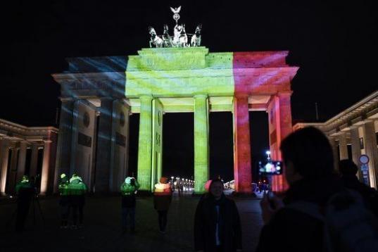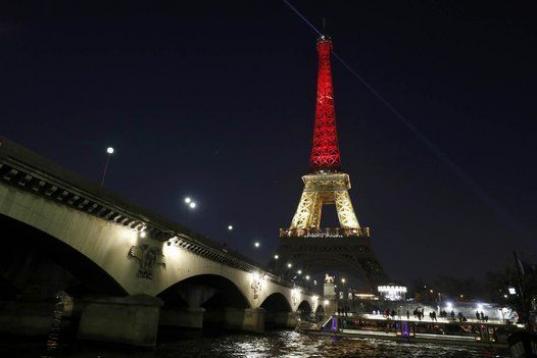 La Torre Eiffel y otros monumentos europeos se iluminan con los colores de la bandera belga.