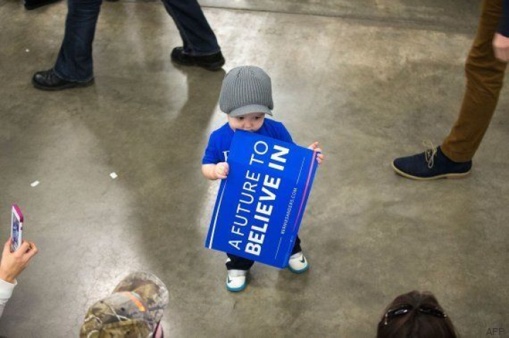 Craig Fietzer, de 19 meses, aguarda la llegada de Sanders en Madison.