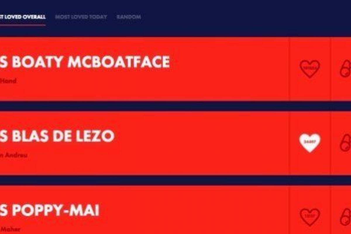 La primera posición la ocupa 'Boaty McBoatface', que fue propuesto por un expresentador de la BBC, James Hand, que ahora se ha visto obligado a pedir perdón públicamente después de que su idea, algo burlona y que ha ofendido a muchos, haya triunfado hasta tal punto: