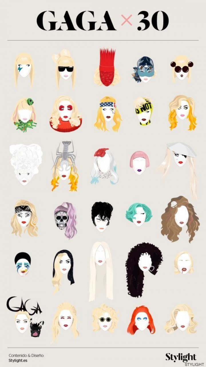 No sólo eso, sino que Lady Gaga ha alcanzado numerosos récord Guiness. Su estilo camaleónico ha hecho que sus looks, maquillajes y peinados se hayan convertido en una parte inseparable de su personalidad, desde la excentricidad hasta el glamour. Maxi pelucas, maquillajes a todo color, sombreros que simulan esculturas… Por no hablar del pelo: largo, corto, rizado, liso, rubio, moreno, rosa… ¿quién da más? Por su 30 cumpleaños, en Stylight han recogido sus looks más icónicos, aquellos que sin ninguna duda deberías probar antes de los 30, ¿te atreves?