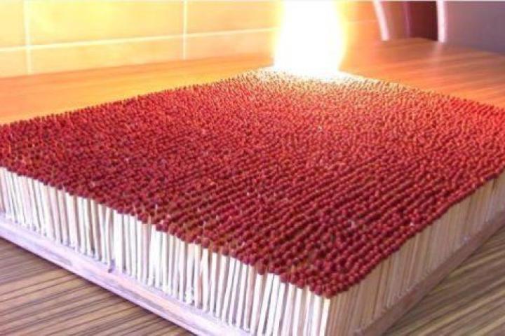 El vídeo de abajo, que muestra filas y filas de cerillas ardiendo como si fuera un bello dominó, se ha expandido por Internet a la velocidad del fuego.