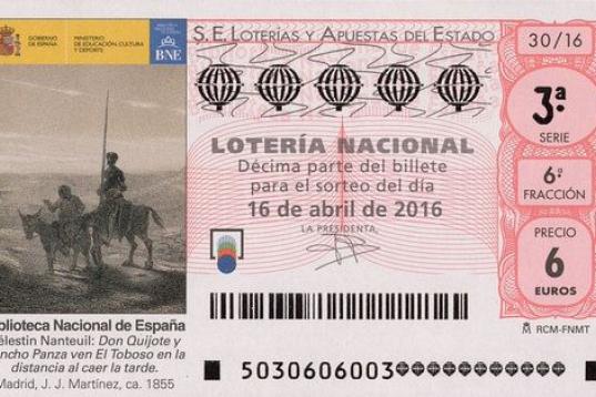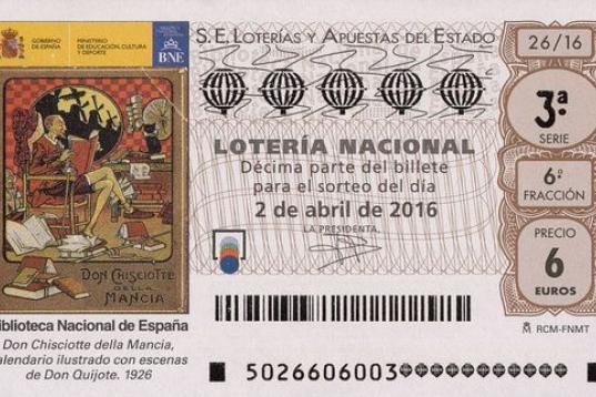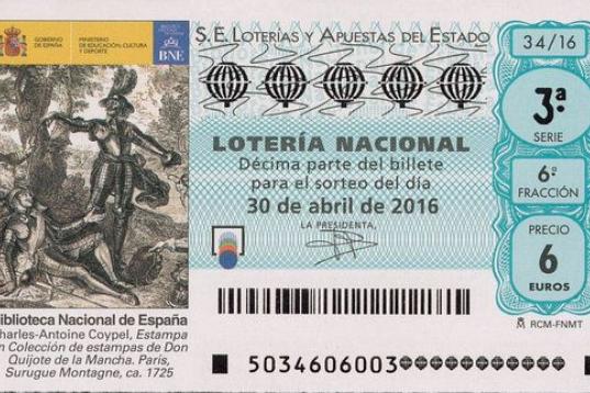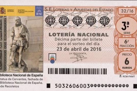 Este 2016 se conmemora el 400 aniversario del fallecimiento del dramaturgo y muchos —para algunos, no suficientes— son los actos que se están convocando para celebrar este cuarto centenario. Entre éstos, se incluye la emisión de cuatro billetes de Lotería en honor al escritor de Alcalá de Henares. Serán los correspondientes a las apuestas del 2, 16, 23 y 30 de abril. Todos ellos llevarán imágenes de Miguel de Cervantes y de su obra pertenecientes a la Biblioteca Nacional de España (BNE), que además acoge la muestra Miguel de Cervantes: de la vida al mito (del 4 de marzo al 22 de mayo).