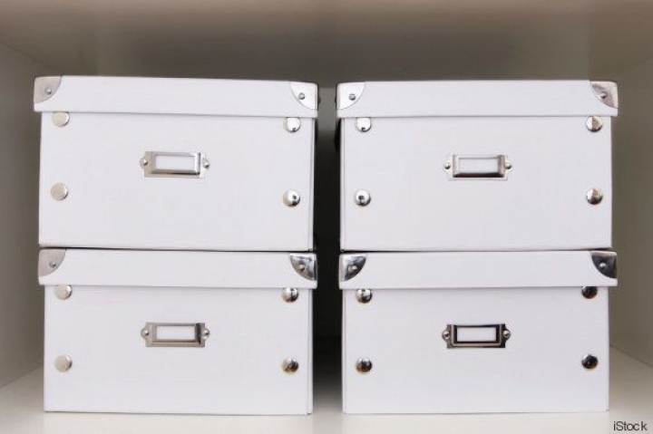 7. Cajas y más cajas. La configuración de los armarios es limitada, pero para eso tenemos la capacidad de crear nuestros propios compartimentos. Las cajas (de cartón, tela, etc) son una gran solución para todo aquello que no tenga un lugar específico. Además, las cajas transparentes son ideales para almacenar zapatos (estarán fácilmente visibles), bufandas, guantes, etc.